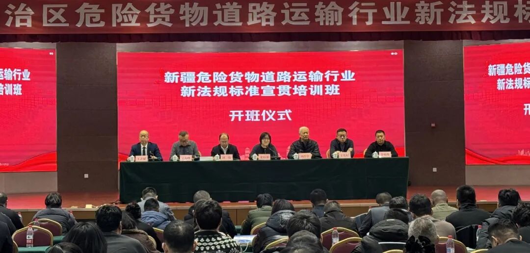 为深入贯彻落实《中华人民共和国危险化学品安全法》、强制性国家标准《危险货物道路运输车辆安全技术条件》(GB 21668-2025)及交通运输部新修订的《危险货物道路运输企业安全管理规范》《危险货物道路运输行业管理工作指南(第2版)》等文件,确保上述法规标准于2026年全面实施有效,帮助各单位准确理解法规要义、健全安全管理体系、落实行业监管要求,新疆道路运输协会(以下简称协会)根据自治区交通运输厅工作安排,1月16日在乌鲁木齐市成功举办“新疆维吾尔自治区危险货物道路运输行业新法规标准宣贯培训班”。来自全疆各地(州、市)交通运输主管部门领导、业务处室负责人、执法骨干及危险货物道路运输企业负责人及管理人员共计230余人参加。